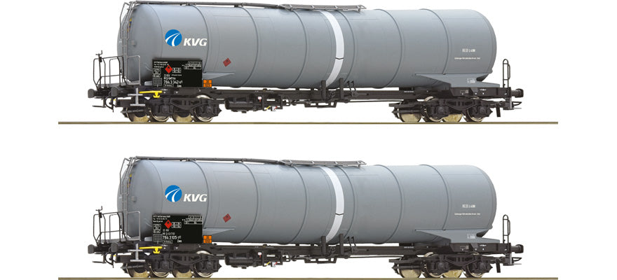 Wagon set with two 4-axle "KVG" tank cars. type Zans. of GATX Rail Austria GmbH.